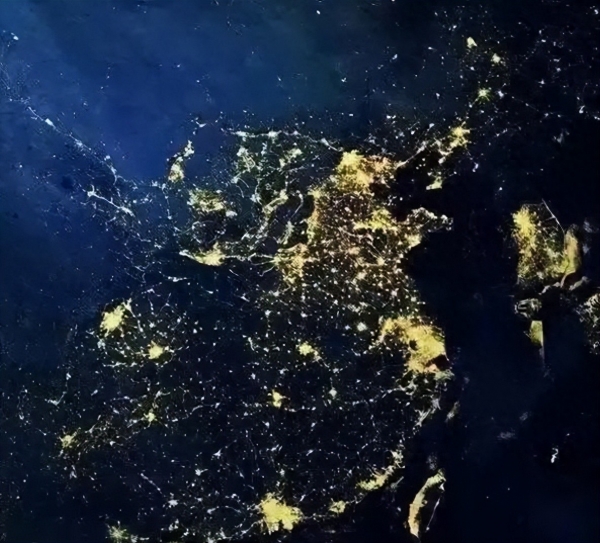 这是一张令人惊讶的卫星夜景图,越南灯火通明,朝鲜却几乎一片漆黑。