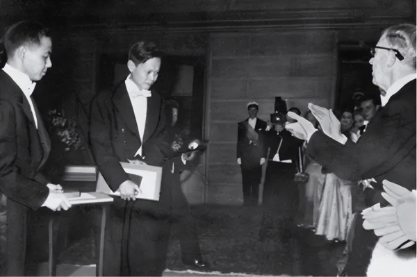一段画质不太清晰的黑白影片记录了1957年的诺贝尔颁奖典礼,当时有两张华人面孔出现在镜头里,他们因提出了宇称不守恒理论,共同获得了当年的诺贝尔物理学奖。