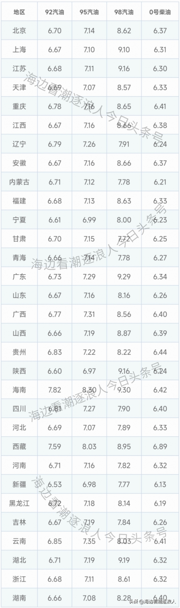 对于贵州、青海、黑龙江、云南、陕西、西藏、四川、内蒙古、新疆等省份的油价没有实行统一价格,这边列出的是省会城市的最高零售价格。