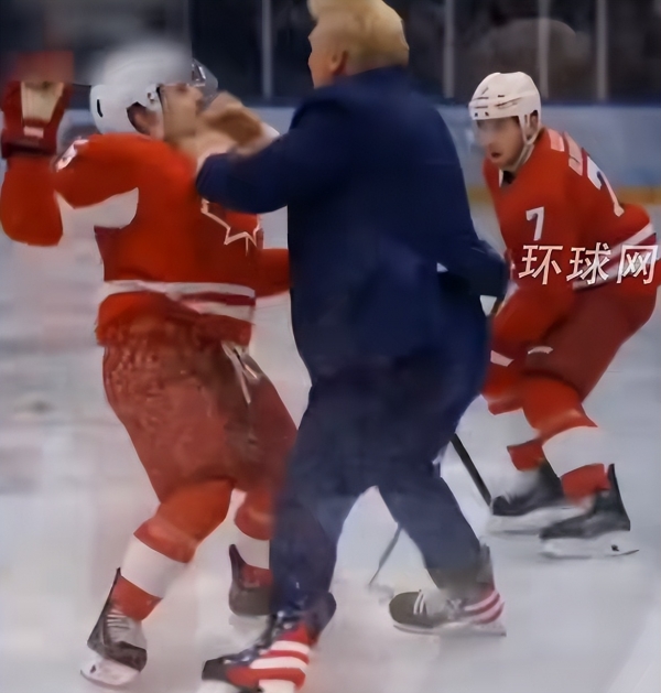 视频中,特朗普化身为一名美国冰球运动员,与加拿大冰球运动员展开激烈对抗,比赛进行到一半时,特朗普脱下手套,赤手空拳殴打加拿大运动员,最后,特朗普进球,"一举拿下加拿大"。