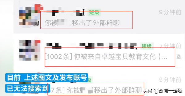 据受伤孩子妈妈透露,在自己着急给孩子处理伤情时,自己的微信上所有关于卓越幼儿园的群聊,都已经被踢出,而且自己还未在任何一个群聊说话,就已经被踢出。