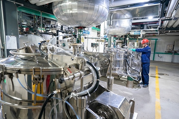 4月28日,湖北襄阳,湖北天舒药业有限公司厂区,车间员工检查反应釜工作状态。 视觉中国