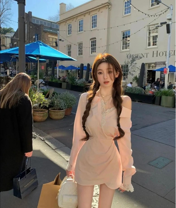 要说这姑娘确实敢穿,束胸外穿+蛋糕裙的组合光是想象就觉得清凉值狂飙,脖子上还戴了显眼的香奈儿项链,简直是把"我身材我做主"写在身上。