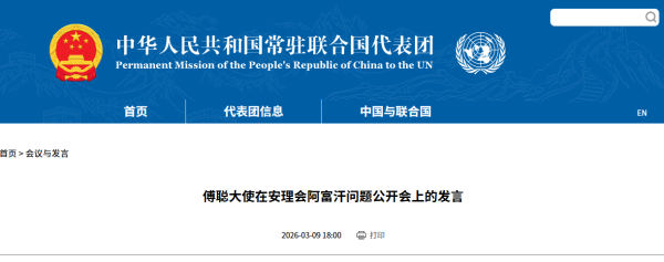中国常驻联合国代表团网站消息,当地时间3月9日,联合国安理会审议阿富汗局势,重点关注阿富汗与巴基斯坦近期冲突、地区局势外溢影响,以及阿富汗妇女和女童权利保障等问题。