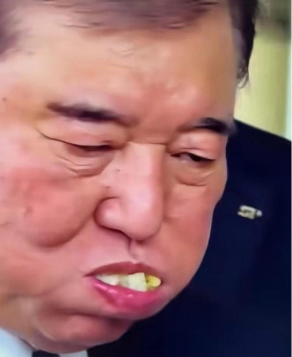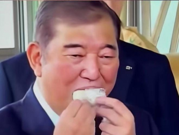 石破茂在会议期间吃个饭团也被喷了。