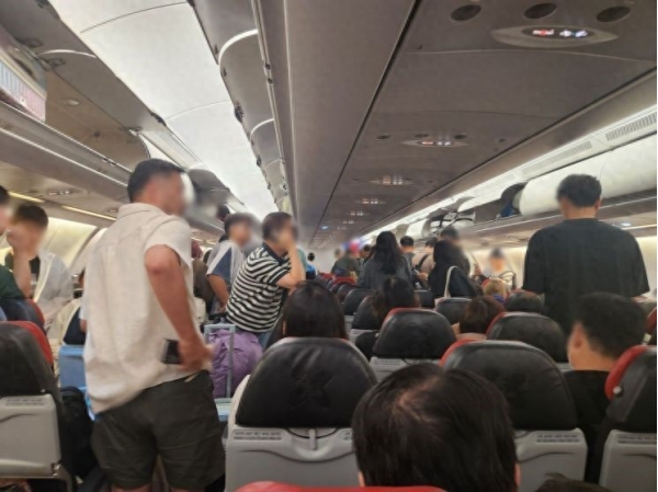 亚洲航空D7506航班降落金浦国际机场时客舱内的情形。图源:韩国《亚洲经济》