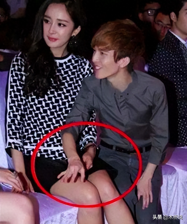 当杨幂专心与其他演员交谈时,郭敬明就趁机把手轻轻放在她的大腿上,还一副得意洋洋的表情。