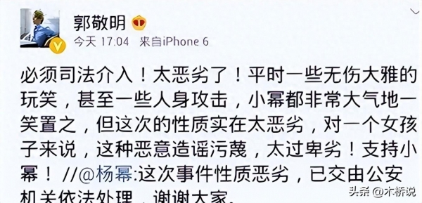 更有网友分析,杨幂可能受到导演方面的压力,不便公开批评郭敬明。
