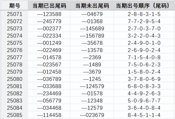 0、1、4、7尾的号上期出了1、4尾,本期注意1、4、7尾