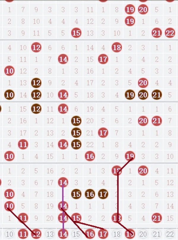 本期整体重点关注前区和中区,前区隔期连号是重点防御对象。中区的三连号和三重号中至少会有一组。横连号大概率会出在后区。1、4尾的号本期应该还有。