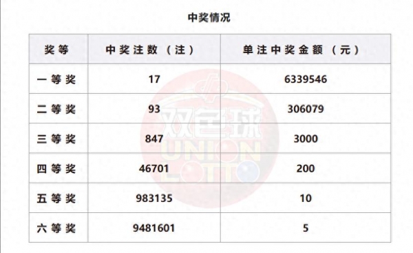 一等奖17注,单注奖金约633万(广东1注,云南11注,陕西5注)