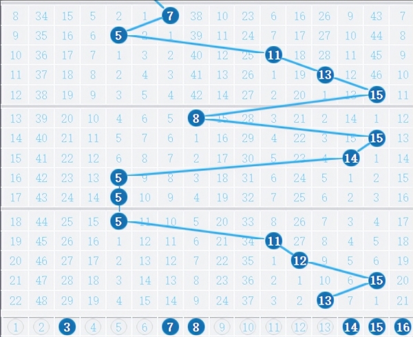 蓝球6码推荐:03、07、08、14、15、16