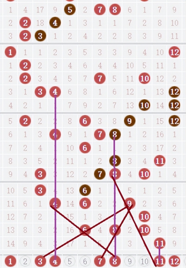 小概率出号分析:前区预计会走热,四个隔期连号中应该会有一码,尤其注意01和11。