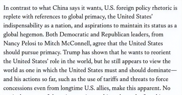 9月20日,美国《外交政策》杂志刊登了一篇"打脸文",直接指出白宫的对华认知存在"根本性误判",中国压根没想取代美国、称霸世界。