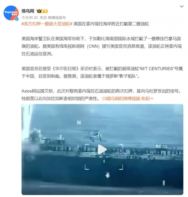 而这一次,美国把所有的路子堵死,不仅扣押了"世纪号",还在同期追踪、拦截、威慑多艘涉嫌运输委内瑞拉原油的油轮,特朗普明确表示后续将继续扣押更多油轮。