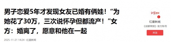 女方母亲告诉他:早在2021年,女儿已经结婚,并在2025年8月生下第二个孩子。也就是说,张先生以为自己孩子要出生的时候,对方其实正在为另一个家庭添丁加口。