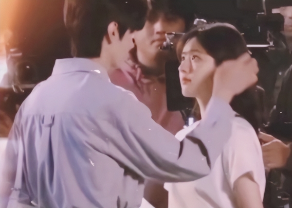 这组路透图演绎的剧情正是陈哲远饰演的段嘉许和赵露思饰演的桑稚深情拥吻的画面,俊男美女眼神拉丝的暧昧场景简直令人上头,两人之间的小互动也很有偶像剧氛围。