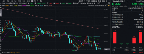 近5个交易日,百分百布局战略新兴产业的双创龙头ETF(588330)横盘震荡,截至上周五(8月9日)回落至所有均线以下,然而资金却逆行抢筹,上交所数据显示,双创龙头ETF(588330)近5个交易日中有3日获资金流入,合计流入金额444万元,显示资金看好科技创新方向后市潜力,提前进场埋伏。