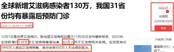 最后聚焦咱们伟大的祖国 -- 中国,面对艾滋病这个全球性难题,中国始终保持高度警惕,全力以赴开展防治工作。我国拥有 14 亿庞大人口基数,这在艾滋病传播者眼中,无疑是一片极具 "潜力" 的 "沃土"。然而,截至 2023 年末,全国艾滋病感染人数仅为 129 万,这一成绩背后,凝聚着无数防艾工作者的辛勤汗水。