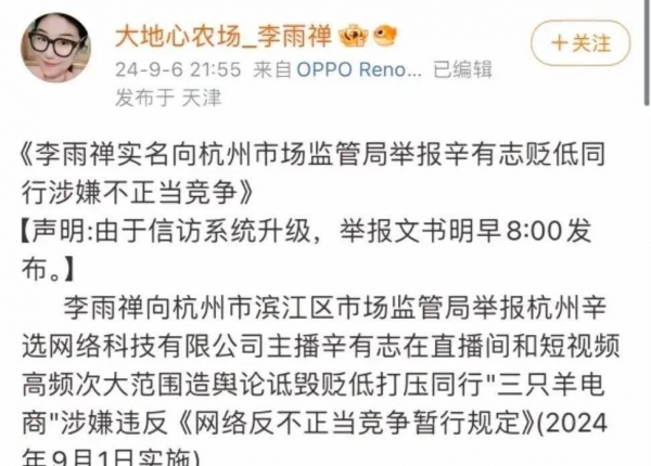 就在这场混战愈演愈烈之际,李雨禅高调登场,将矛头直指辛巴,指责其以"售后赔偿"为名,行"不正当竞争"之实。她认为,辛巴并非三只羊的经营者,无权对消费者进行赔偿,此举涉嫌贬低同行,误导消费者。