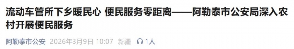 针对农村群众办理车驾管业务路途远、排队久、办事难的痛点,新疆阿勒泰市公安局启动"流动车管所"下乡服务活动,把便民窗口搬到村民家门口,实现足不出村就能办业务。