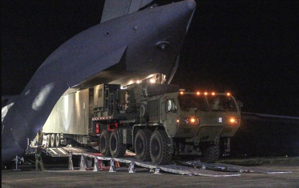 今年4月份美军"堤丰"导弹系统运抵菲律宾的画面