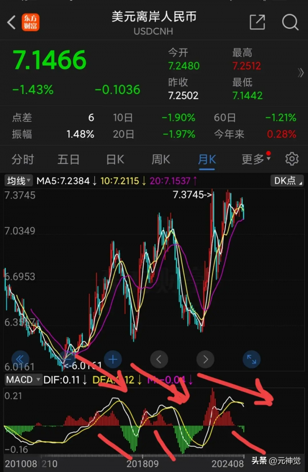 人民币月k线已经进入升值金叉。