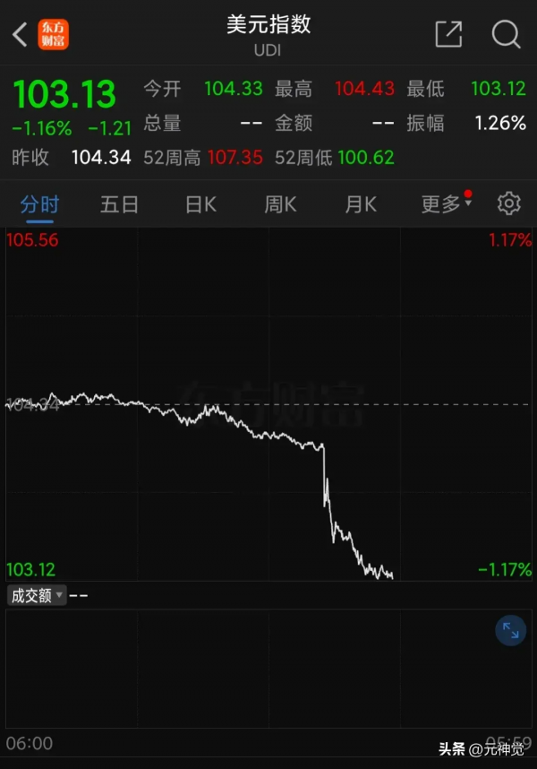 这一波美元降息后,第1步肯定就是跌破100。