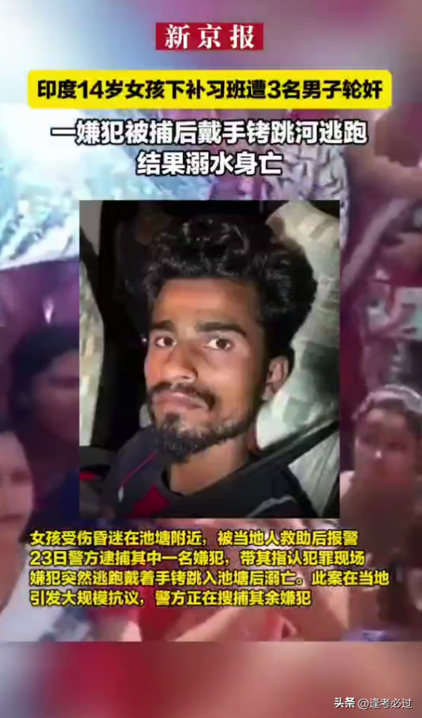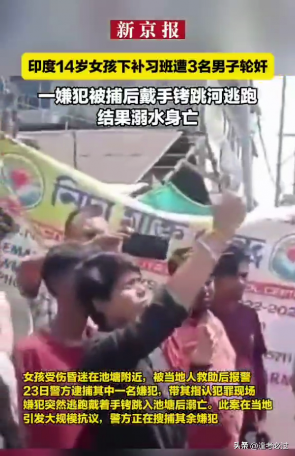 8月24日,印度又曝出一起轮奸案,一名14岁的小女生,在上完补习班回去的路上被三名男子强奸了。受害者的父亲称:"看到我的女儿在医院躺着,话都说不出来,我感到心碎。"