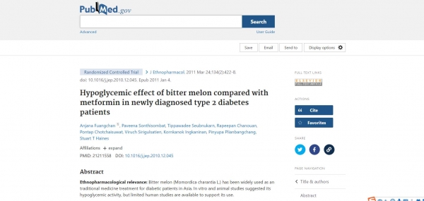 2011年,发表在美国国立卫生研究院(NIH)上,一项为期四周的四周临床试验结果显示,2000毫克日剂量的苦瓜,能显著降低2型糖尿病患者的血糖水平,尽管降血糖的功效比1,000毫克日剂量的二甲双胍低一些,但已经相当不错了。
