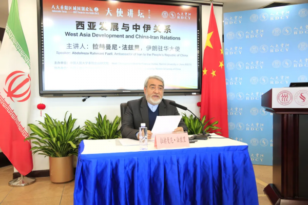 10月28日,伊朗驻华大使拉赫曼尼·法兹里访问中国人民大学,出席由中国人民大学重阳金融研究院举办的区域国别论坛之"大使讲坛"第十二讲并发表演讲。论坛的专家研讨环节由中国人民大学重阳金融研究院高级研究员周戎与中国人民大学国际关系学院教授田文林参与。会议由中国人民大学重阳金融研究院院长、全球领导力学院院长王文主持。