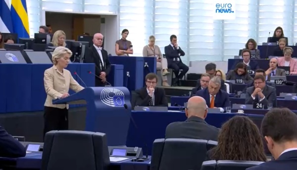 去年10月,欧尔班和冯德莱恩在欧洲议会上激烈交锋 视频截图