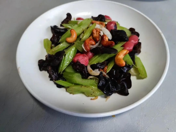 第二样:西芹百合炒腰果,家庭和气,心情舒服