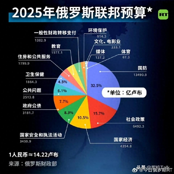 从"今日俄罗斯"公布的2025年俄罗斯联邦预算扇形图可以知道,国防仍是俄罗斯政府预算中最大的支出项目。虽然社会性支出在总额上超过国防支出,但是按照国防支出每年高增幅的趋势,不排除某年国防支出反超社会性支出总额的可能性。因此,普京的担忧并非无道理,当前俄国防支出确实需要"降一降速"了。