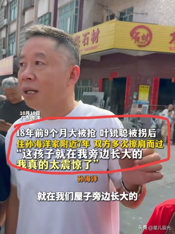 真没想到,叶锐聪在深圳生活的地方,居然跟孙海洋这么近,而且还在那里住了7年。叶锐聪妈妈肯定也没想到,她自己曾全国各地去寻找孩子,还常去过孙海洋家,与他们家那么熟,明明孩子离自己这么近,却找了18年才找到。祝福这位伟大的母亲苦尽甘来!