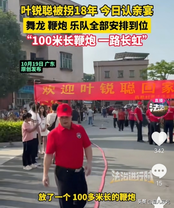 今天的认亲宴上,有鲜花、有横幅、有100米鞭炮,还有媒体的助阵和网友的祝福。叶锐聪妈妈和儿子拥抱在一起,哭得声泪俱下。这眼泪里包含对儿子的思念,也是对自己18年艰苦寻子路的告别。