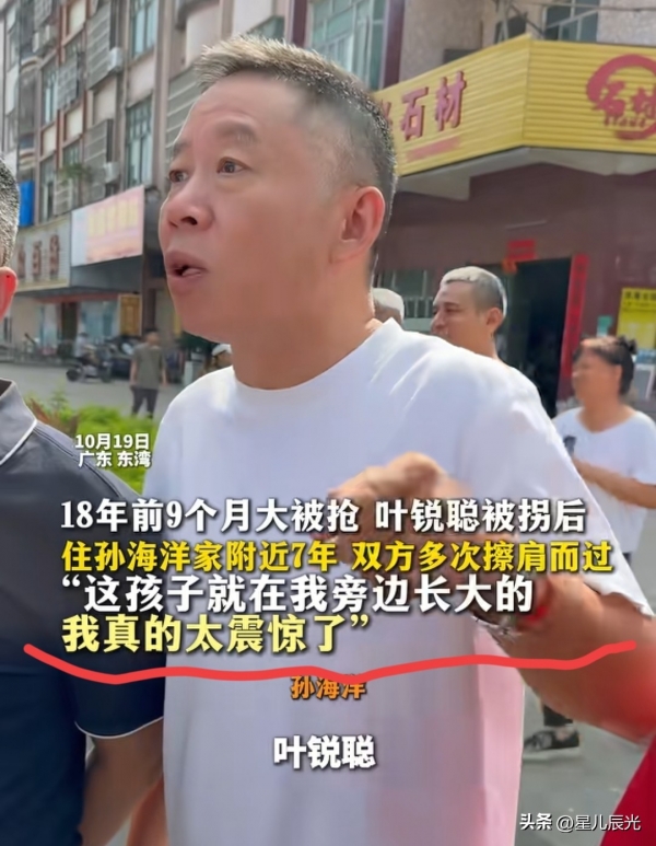 接受采访时,孙海洋说:"叶锐聪住在我家附近七年,这孩子就在我身边长大的。我看这孩子很熟啊,我真没想到。"