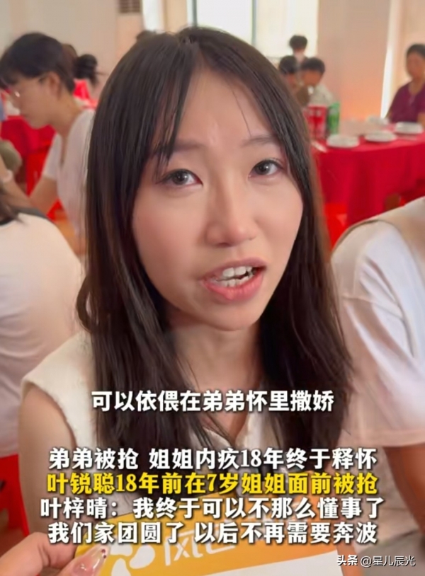 姐姐大哭,她终于释怀了,她心里认为,如果不是自己带弟弟去那里,弟弟也不会被人抢走,弟弟现在回来,她终于可以不用那么懂事,可以在爸妈怀里撒娇了。认亲现场,她还贴心给弟弟揉肩,给弟弟减压。