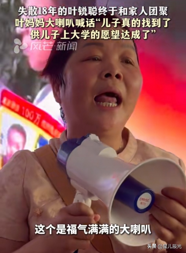叶锐聪妈妈把手中的大喇叭传给了郑楚泽爸爸,希望他也能接上自己的好运,早日与家人团聚。