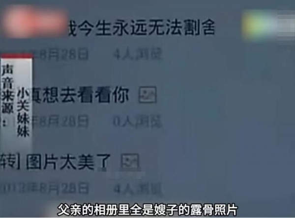 而揭穿两人不正当关系的正是小关的妹妹,原来嫂子常用妹妹的手机和父亲聊过天,之后就把手机上的聊天记录删掉了,但是让她没想到的是,电脑上的微信聊天记录并没有删除,这就让两人的关系彻底曝了光。