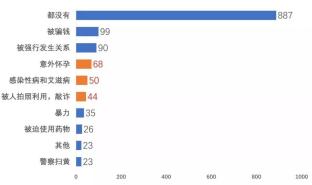 在被调查的1177人中,有3/4的人并未在网约性行为过程中发生危险,但是其中有50人因此获得性传播感染(包括艾滋病病毒感染),占比4.25%,这一比例甚至超过遭遇暴力行为和被人拍摄裸照的比例。另外,有18.1%的人遭遇到非意愿怀孕,其中15~19岁的人群中有20人遇到过非意愿怀孕的状况,占比9.39%。感染艾滋病病毒和非意愿怀孕也确实是大家在网约过程中最担心的情况,有959人最害怕感染艾滋病病毒,占比81.48%,有327位女性会担心自己在性交过程中怀孕,高达76.9%。