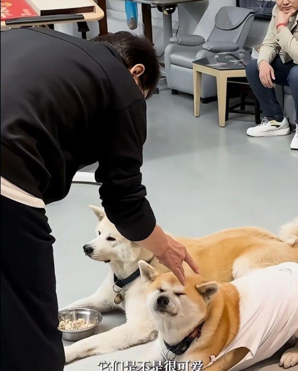还有人注意到他视频里的小狗 -- 镜头扫过客厅时,一只小土狗凑过来蹭他的手,他顺手摸了摸狗脑袋,一看就很宠。