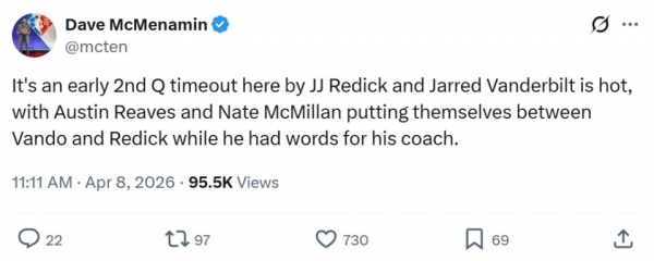 ESPN湖人队记Dave McMenamin跟进曝出里夫斯与助理教练介入拦住了双方,随后克内克特将范德比尔特换下。