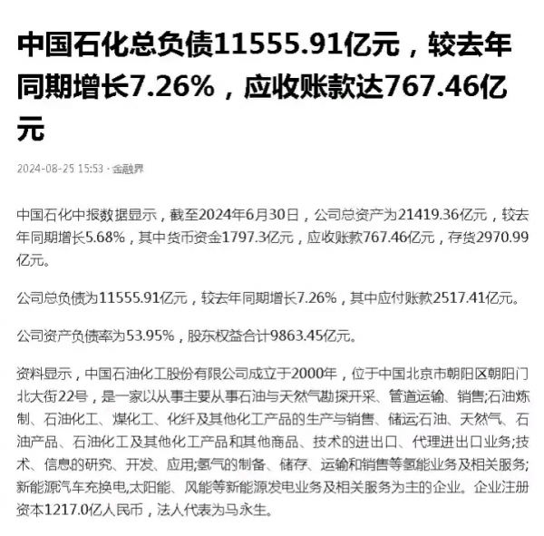 中国石化的负债已经堆成山了,高达11555.91亿元!
