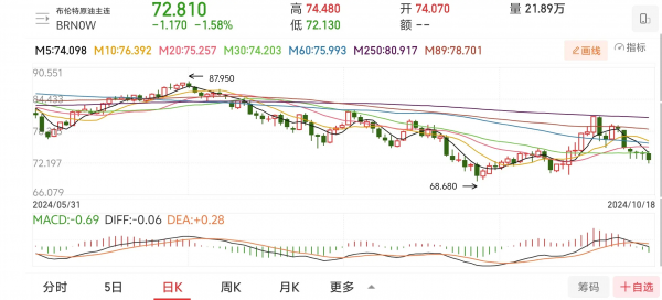 截止上周五,布伦特原油期货的价格已经跌至了72.81美元/桶,相比较本轮油价调整初始,有较大幅度的下跌。