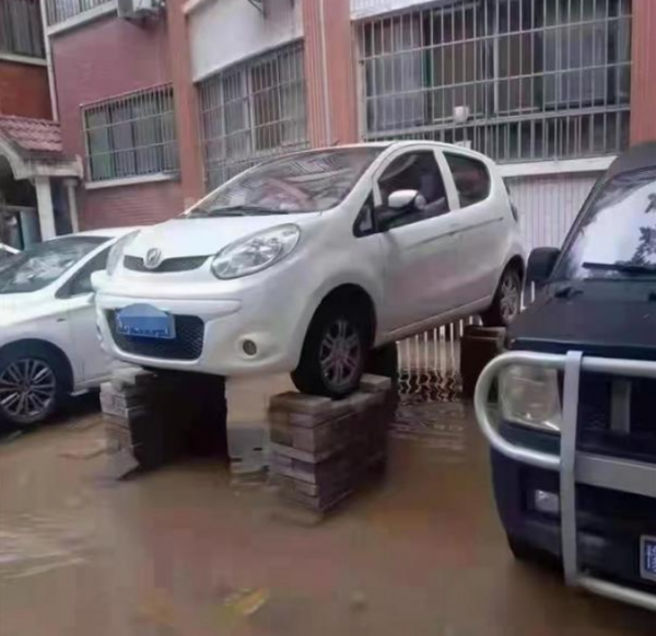 现在城市的排水系统已经进行了加强,只要不是特别急的暴雨,雨水是可以通过下水道排掉的。但遇到像杭州这样的瓢泼大雨,一时之间雨水无法排掉,还是会产生积水。如果车辆停在地面上就可能会被淹,有车主就会在4个轮胎底下垫上石头,让车辆离地面远一些。这个方法可以说是最简单也最实用的,只要从路边找几块砖头就可以解决。