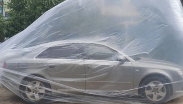 这个"雨衣"跟我们平时穿的雨衣不同,它其实就是一个很大的保鲜膜。保鲜膜具有防水的作用,把车放用保鲜膜包裹起来,即使雨水再大,只要保鲜膜不破损,就不会进水。有车主想到了这个原理,就用一个巨大的保鲜膜把车辆给包裹了起来。这样就算是雨水漫到车顶,水就不会进到车里。