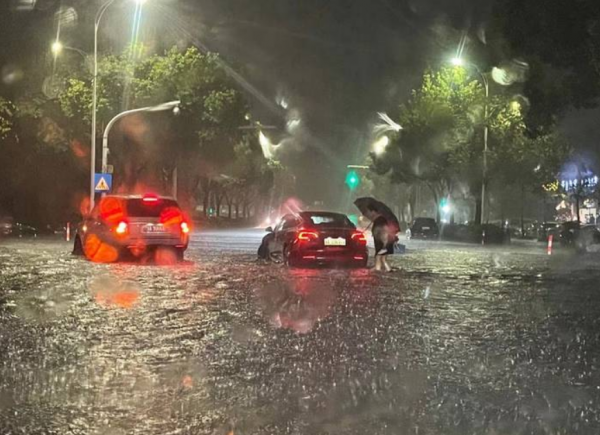 浙江杭州下了一场大暴雨,雨水就像瓢泼一般,部分路段出现了严重积水,车辆只能在水中慢慢前移,就像是在水中开船一样。还有一些地下车库出现了雨水倒灌,车库里的积水没过了小腿部,不少私家车都被淹了。