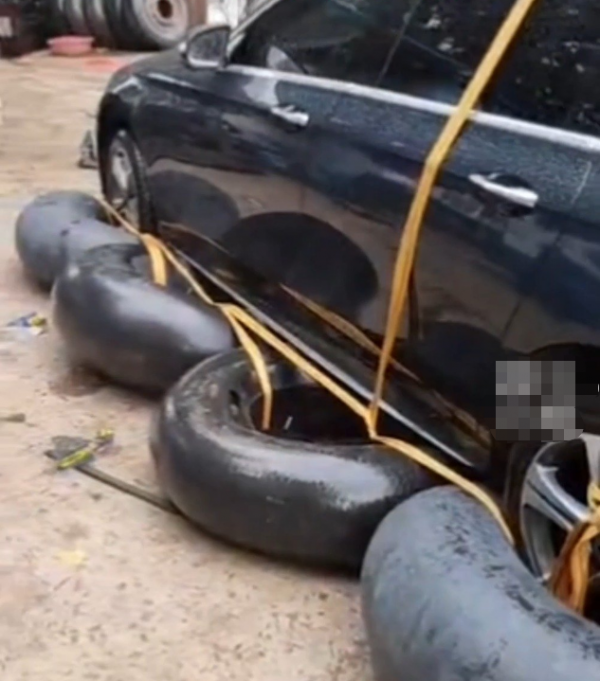 正所谓"只要站得够高,洪水就追不上我",把车吊起来之后,车辆确实不会受到进水的困扰,但是这个方法挺费时费力的,而且保不好还可能会对车身造成影响,尤其是车漆。