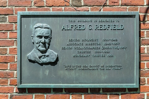 伍兹霍尔海洋研究所的雷德菲尔德实验室铭牌,该实验室系因纪念雷德菲尔德在海洋学方面的成就而得名